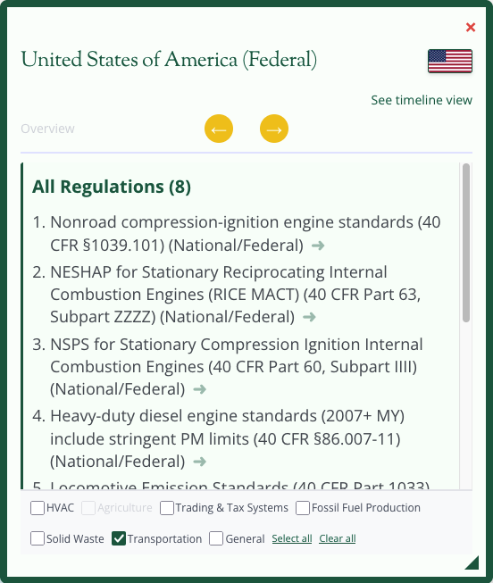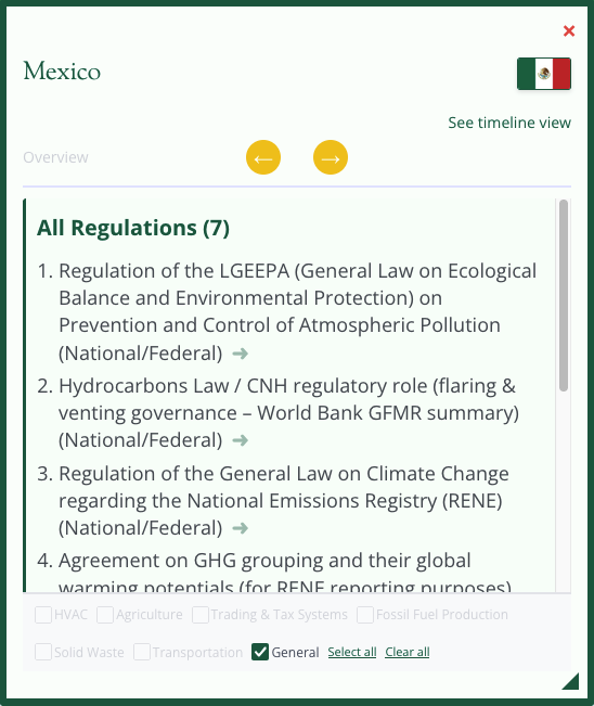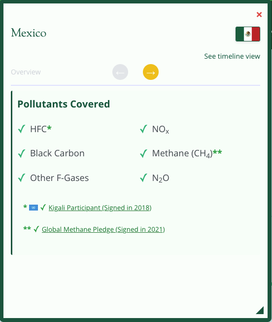 Select any country to see which Super Pollutants are covered and an overview of regulations