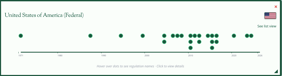 See the country’s timeline-view of regulations